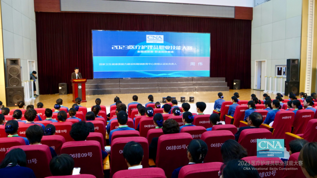 国家卫生健康委能力建设和继续教育中心资格认证处负责人周伟代表大赛主办方对此次大赛各支持单位、专家学者及领导们表示感谢,对参赛院校、选手和执裁团队表达敬意。他表示,近年来国家一系列政策文件的出台,对加快发展护理服务业,增加护理服务供给,精准对接人民群众多样化、多层次的健康需求具有重要意义。他希望通过举办本次赛事,集中展现一线医疗护理员的良好职业风采,助力形成医教协同,改革创新的向好势态,不断助力健康中国建设。